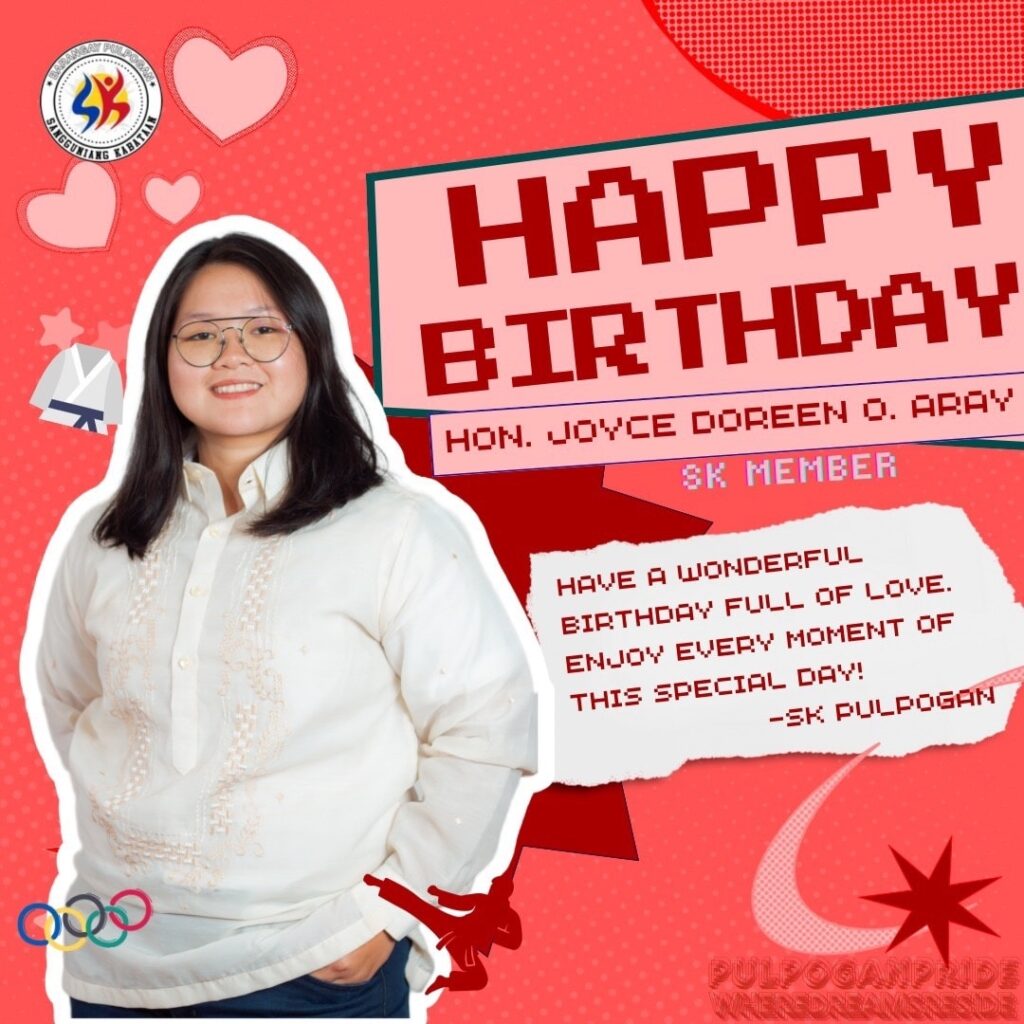 Wishing you a day filled with joy and celebration as remarkable as the service you give to the youth of Barangay Pulpogan. Thank you for your unwavering dedication, leadership, and for being a true inspiration to many.