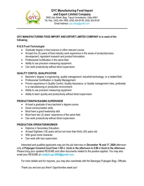 Job Fair Alert: Employment Opportunities at Barangay Pulpogan
