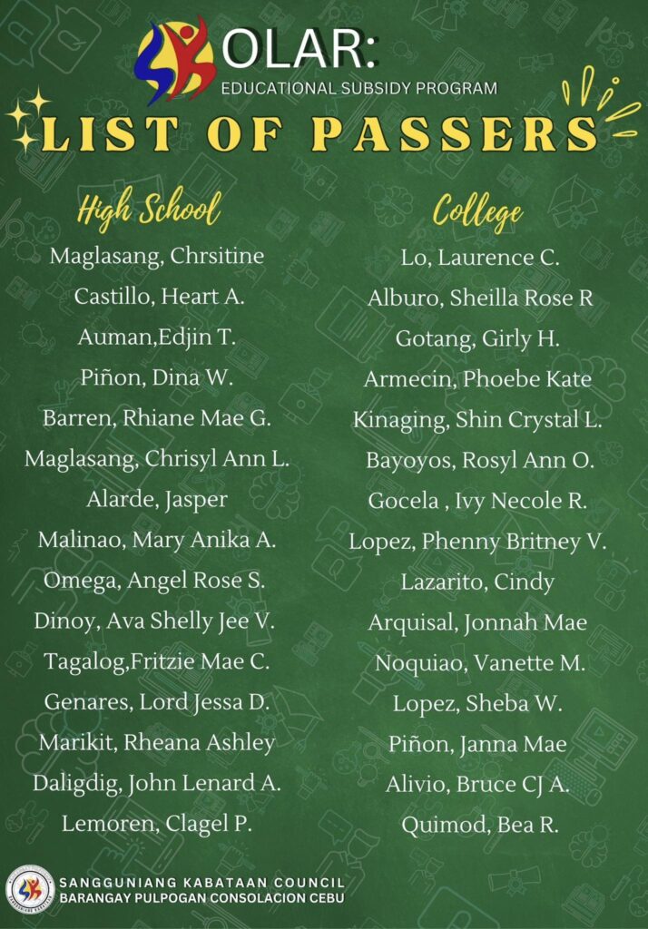The Sangguniang Kabataan of Barangay Pulpogan proudly extends its warmest congratulations to Ms. Mervic Orbiso Dela Peña, REA, a proud youth of Barangay Pulpogan, for not only passing but securing the Top 5 spot in the November 2025 Real Estate Appraisers Licensure Examination (REALE). Your hard work, discipline, and perseverance have brought honor to our […]