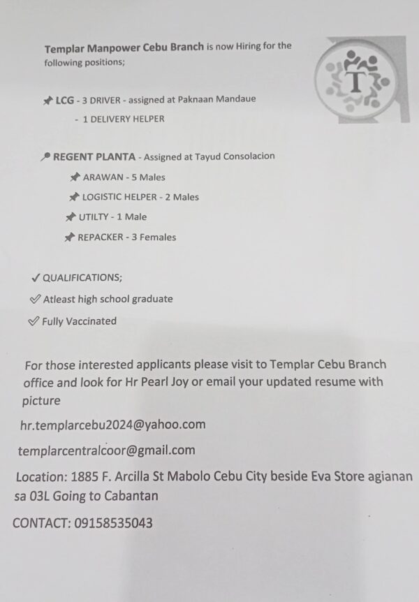 Maayong adlaw Pulpoganon! Take a look! Sa kadtong nangita ug trabaho basin ug haom kani…